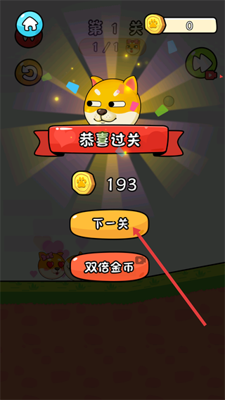 4、成功過(guò)關(guān)后,界面顯示【恭喜過(guò)關(guān)】,此時(shí)點(diǎn)擊【下一關(guān)】按鈕,即可繼續(xù)挑戰(zhàn)后續(xù)關(guān)卡。