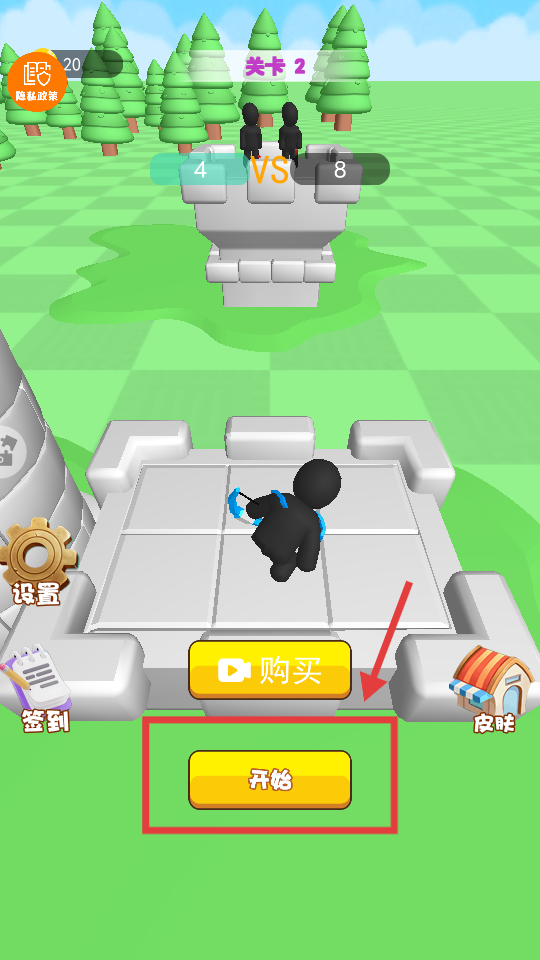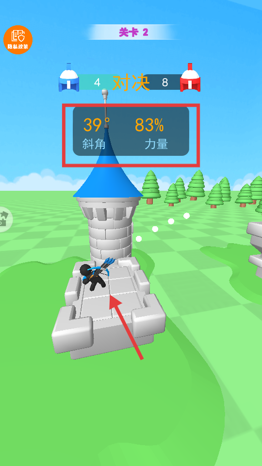 1、點擊【開始】按鈕進入【關(guān)卡2】,我方【4】人對戰(zhàn)敵方【8】人,準備開啟射箭對決。