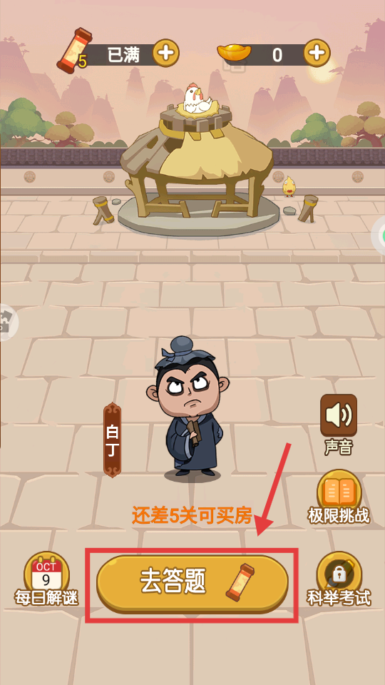 1、點擊【去答題】按鈕,進入關(guān)卡開啟漢字解謎挑戰(zhàn),需集中精力應(yīng)對字謎。