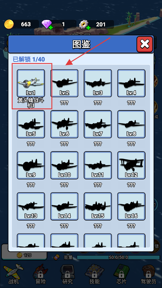 4、查看圖鑒了解【黃頭蜂戰(zhàn)斗機(jī)Lv1】,規(guī)劃后續(xù)戰(zhàn)機(jī)解鎖升級(jí)路線,提升艦隊(duì)?wèi)?zhàn)斗能力。