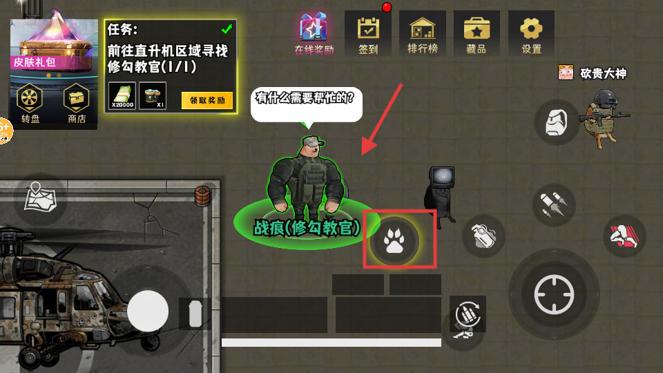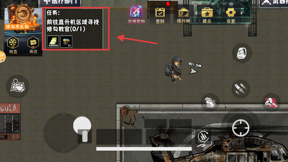 1、接取【前往直升機(jī)區(qū)域?qū)ふ倚薰唇坦佟咳蝿?wù),前往直升機(jī)區(qū)域,完成可獲【X20000】等獎勵。