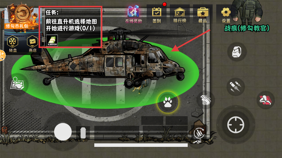 4、接取【前往直升機(jī)選擇地圖開始游戲】任務(wù),靠近直升機(jī),準(zhǔn)備選圖開啟游戲。