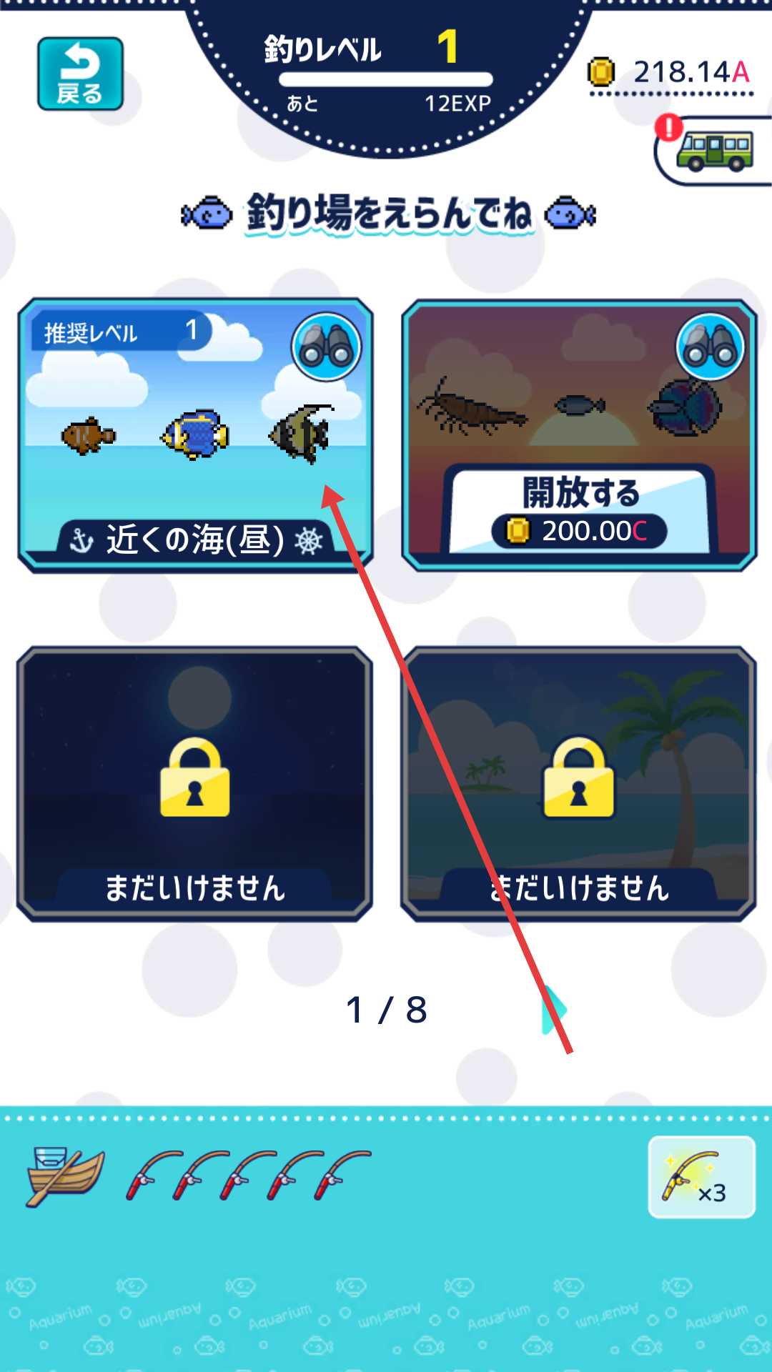 1、攢夠200.00C后,解鎖新釣場(chǎng),為后續(xù)釣魚(yú)做好準(zhǔn)備。