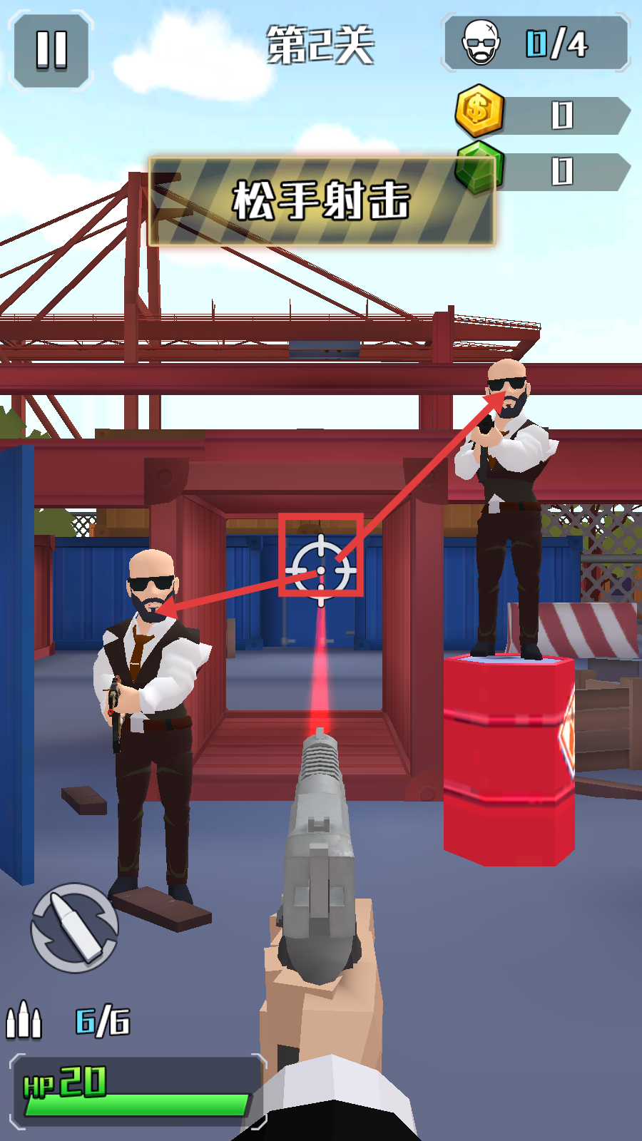 2、在關(guān)卡中,依據(jù)【松手射擊】提示,用準(zhǔn)星瞄準(zhǔn)場景里的敵人(如持槍的角色),鎖定目標(biāo)后松手射擊,消滅敵人推進關(guān)卡。