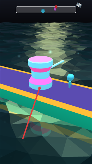 2、游戲中遇到像大錘子的障礙時(shí),等待大錘子升起后操控角色靈活躲避,繼續(xù)在賽道前進(jìn)。