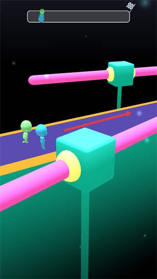 3、碰到粉色管道配青色方塊的旋轉(zhuǎn)障礙,操控角色避開(kāi),保持前進(jìn)節(jié)奏。