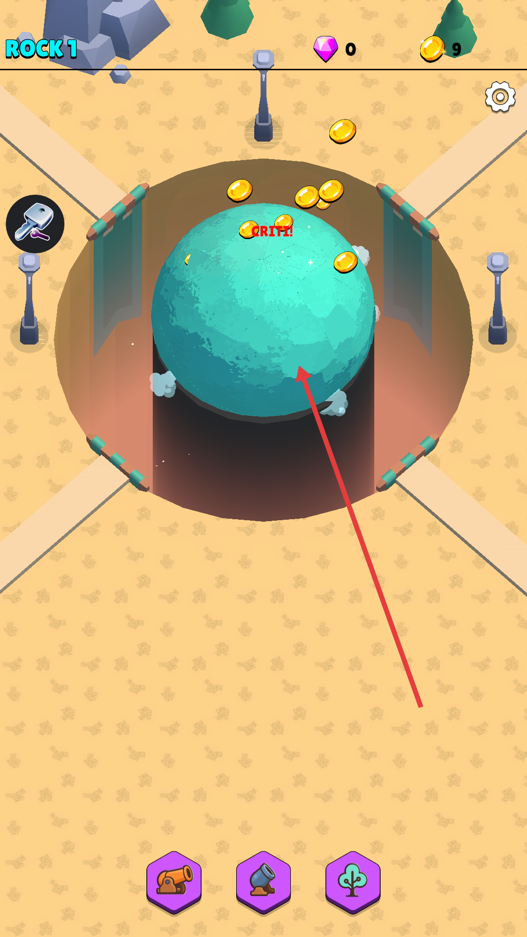 1、在“ROCK1”關(guān)卡里,攻擊中間的青色球體,收集球體上的金幣。
