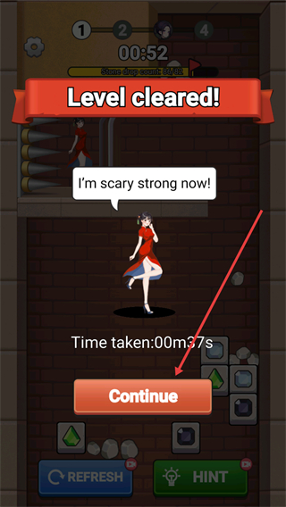4、當(dāng)屏幕顯示“Level-cleared!”時(shí),點(diǎn)擊橙色的【Continue】按鈕,進(jìn)入下一個(gè)關(guān)卡。