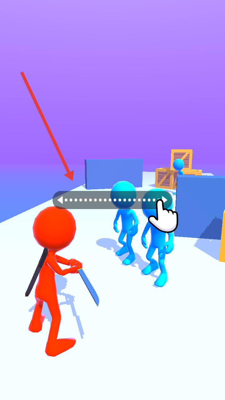 1、滑動屏幕操控紅色持劍角色在平臺場景中移動,開啟戰(zhàn)斗挑戰(zhàn),熟悉移動操作。