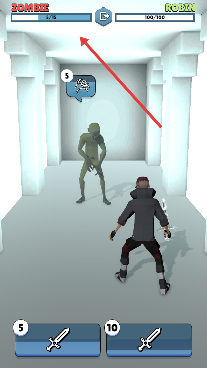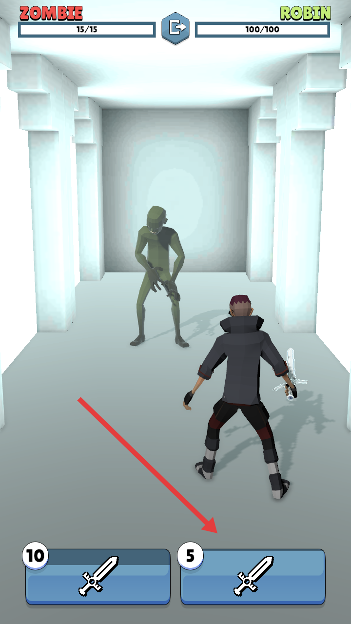 2、選擇攻擊卡牌,如數字5的劍卡,對僵尸敵人發(fā)起攻擊,削減其生命值。