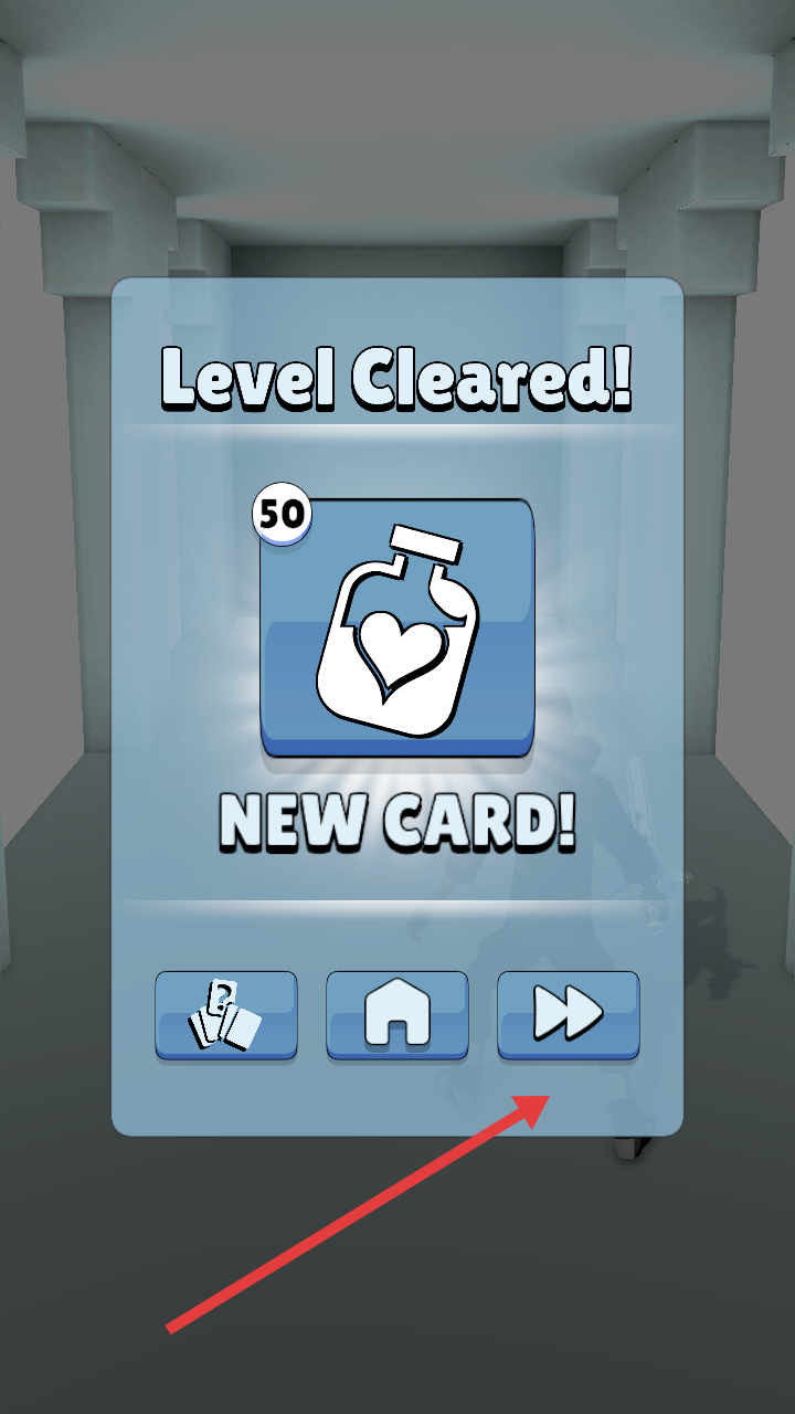 4、關卡清除后,點擊箭頭按鈕,領取新卡牌獎勵,進入下一關繼續(xù)挑戰(zhàn),提升戰(zhàn)斗技巧。