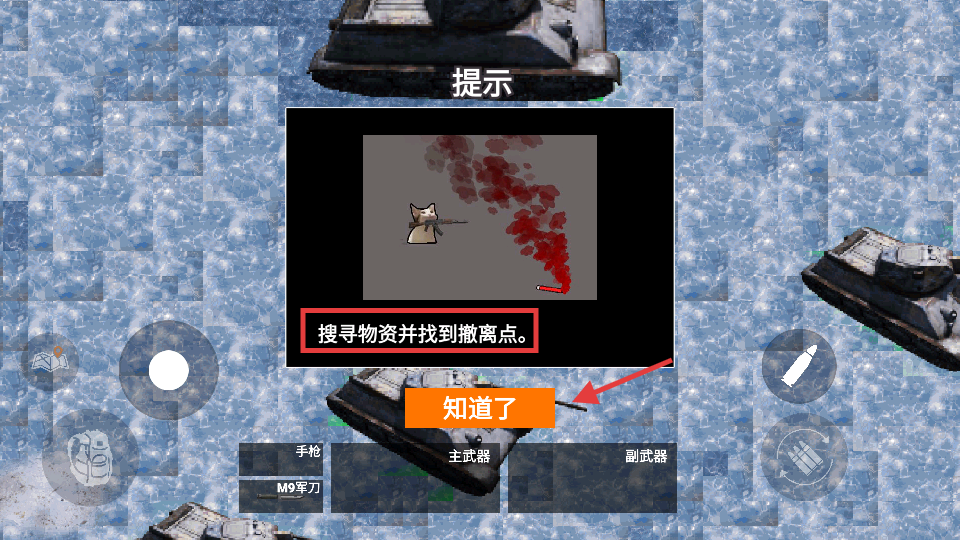 2、游戲提示需搜尋物資并找撤離點(diǎn),點(diǎn)擊“知道了”確認(rèn),依提示開(kāi)展行動(dòng)。