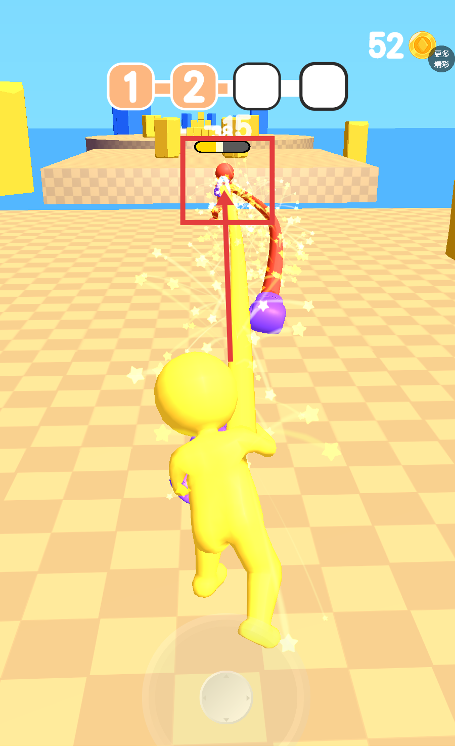 2、操作設(shè)計簡單直觀,通過滑動屏幕即可控制出拳方向和長度,新手能快速上手,無時間限制設(shè)定允許玩家從容規(guī)劃策略,提升操作流暢性與體驗舒適度。