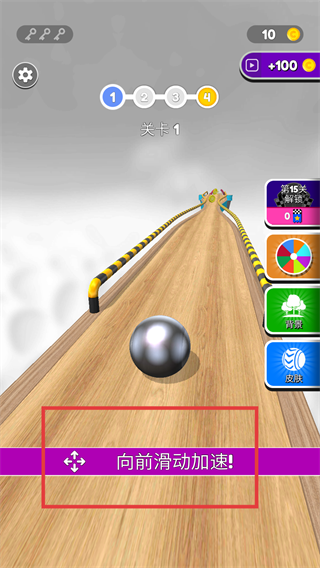 1、在游戲開始界面,按照提示【向前滑動加速】,讓球體開始移動。
