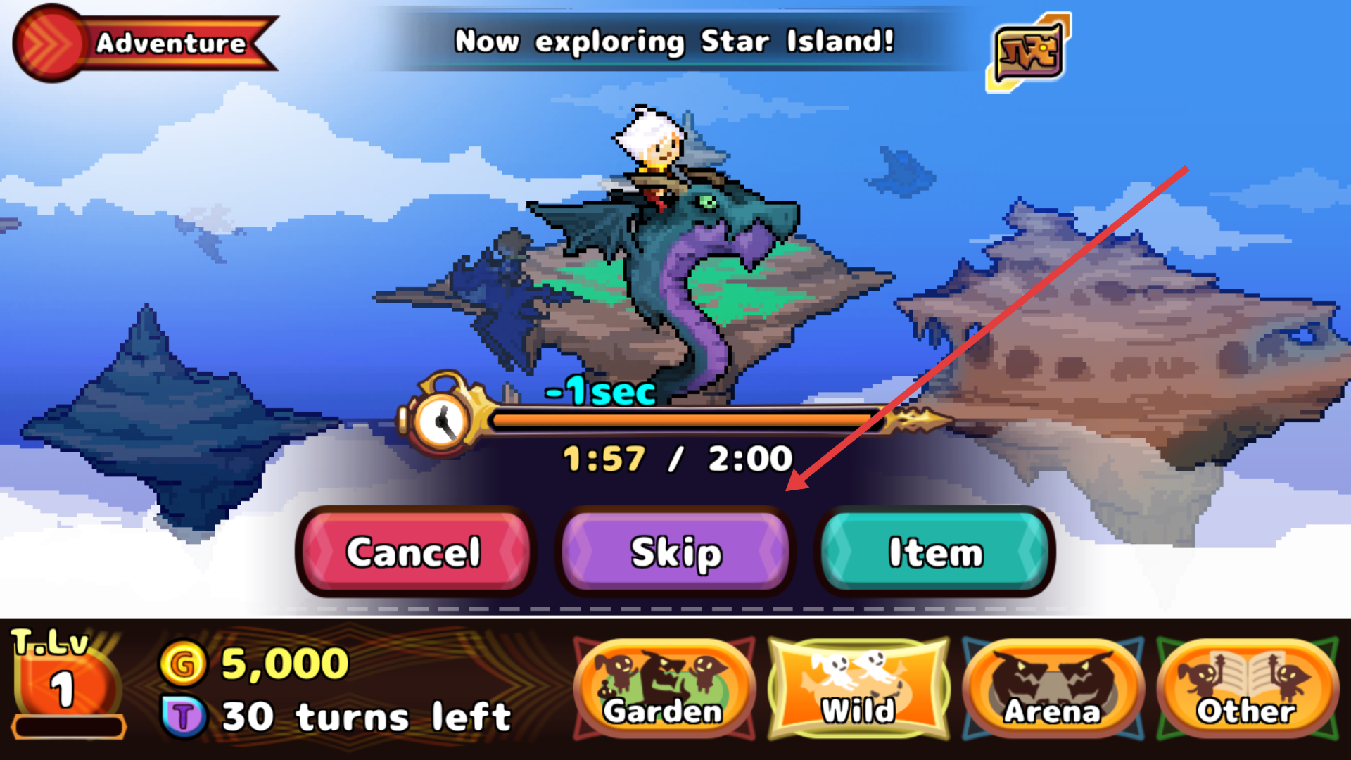 4、探索【Star-Island】時(shí),可根據(jù)情況點(diǎn)擊【Cancel】【Skip】或【Item】按鈕,對(duì)探索過程進(jìn)行操作。