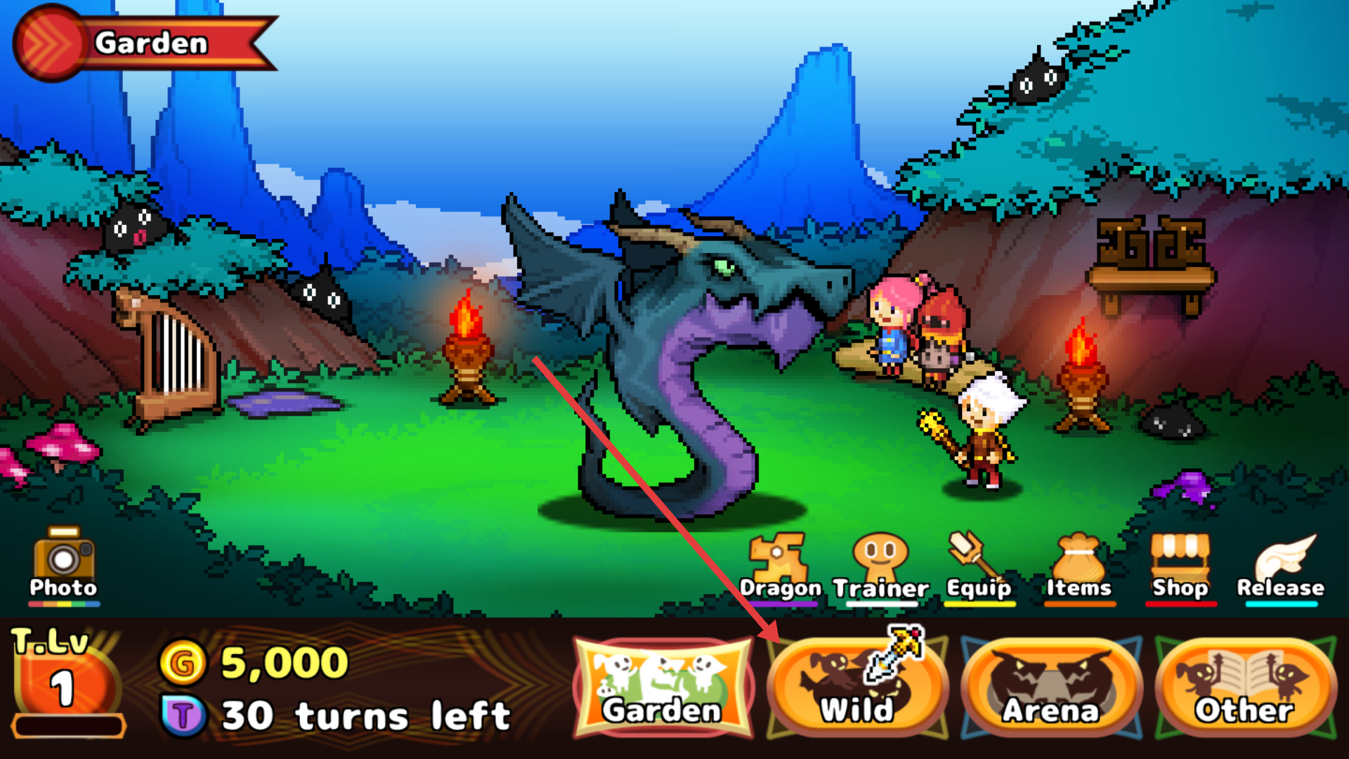 1、點(diǎn)擊界面下方【W(wǎng)ild】按鈕,進(jìn)入野外場景,準(zhǔn)備探索新區(qū)域。