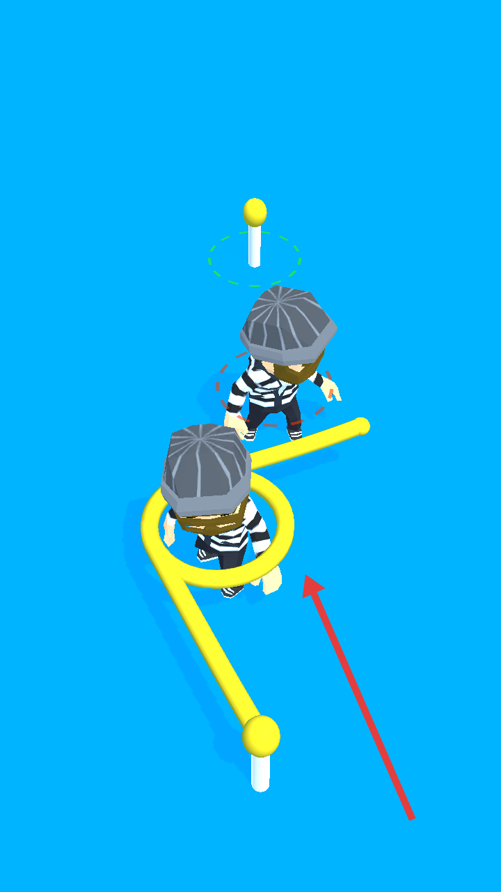 2、操控黃色機(jī)關(guān)線(xiàn),將囚犯逐個(gè)綁住,利用機(jī)關(guān)線(xiàn)的纏繞效果,推進(jìn)關(guān)卡進(jìn)度。
