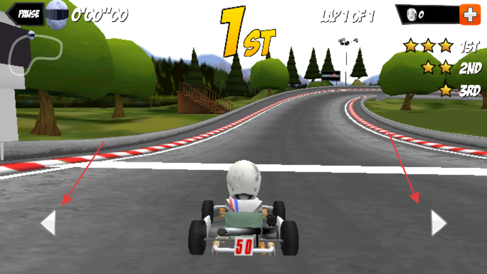 2、比賽開始后,利用左右兩側(cè)的箭頭按鈕控制卡丁車方向,在賽道上靈活轉(zhuǎn)向,保持領(lǐng)先位置。