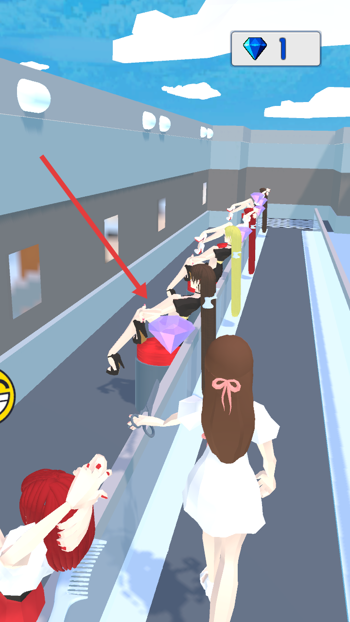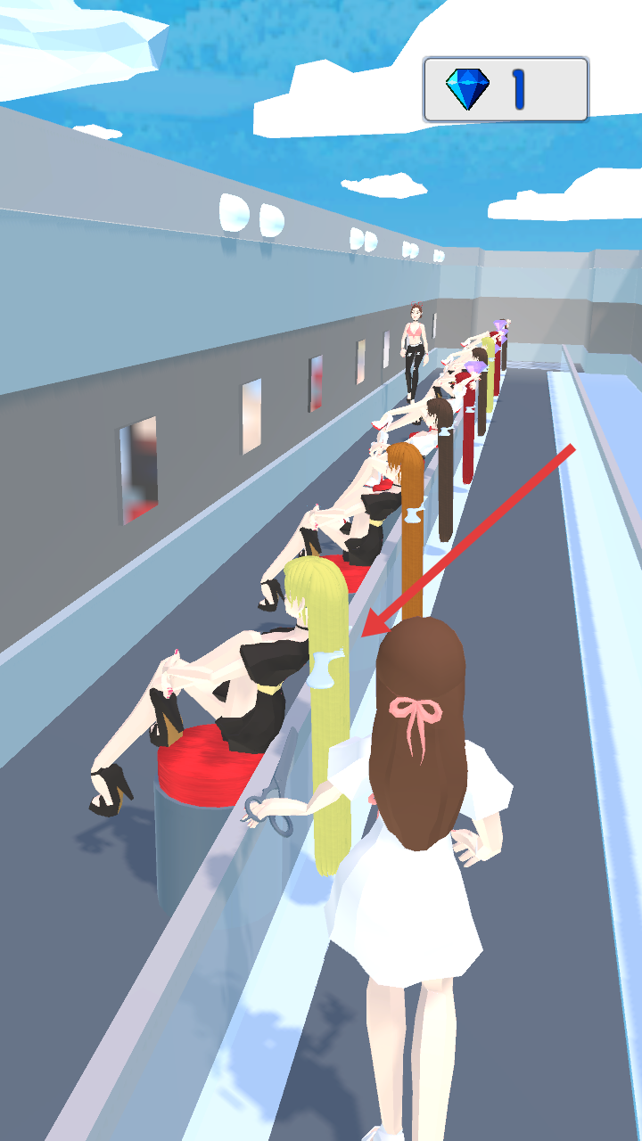 1、在城市跑道場(chǎng)景中,操控手持剪刀的角色移動(dòng),開啟美發(fā)挑戰(zhàn),熟悉游戲操作方式。