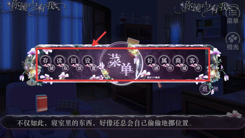 4、進入菜單界面后,可使用【存儲】【讀取】【回放】【設置】等功能,還能查看好感、個性等信息,優(yōu)化游戲體驗。