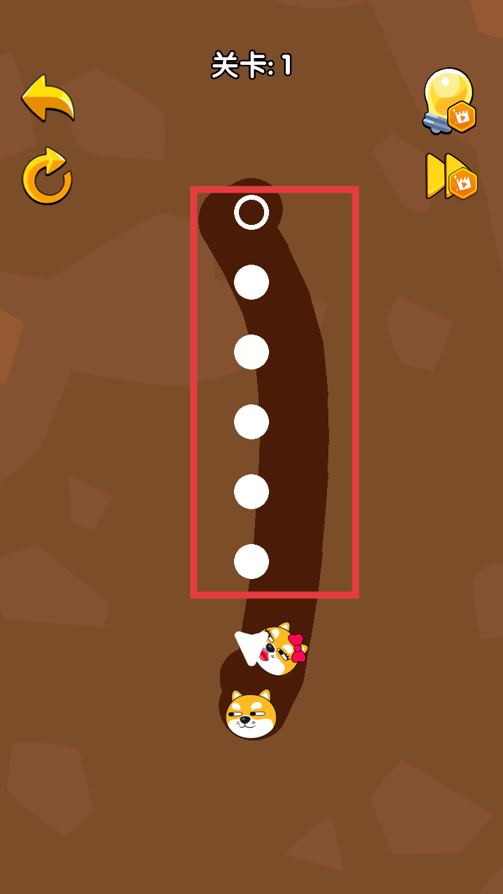 4、通過繪制路徑,讓兩只小狗成功連接相遇。