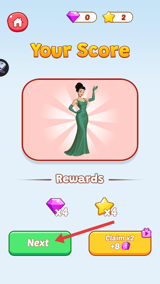 4、關(guān)卡結(jié)束后,領(lǐng)取獎勵,點(diǎn)擊【Next】進(jìn)入下一個環(huán)節(jié)。