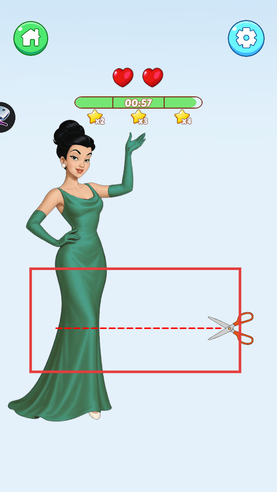 2、在限時內(nèi),點(diǎn)擊剪刀在合適的位置裁剪禮服。