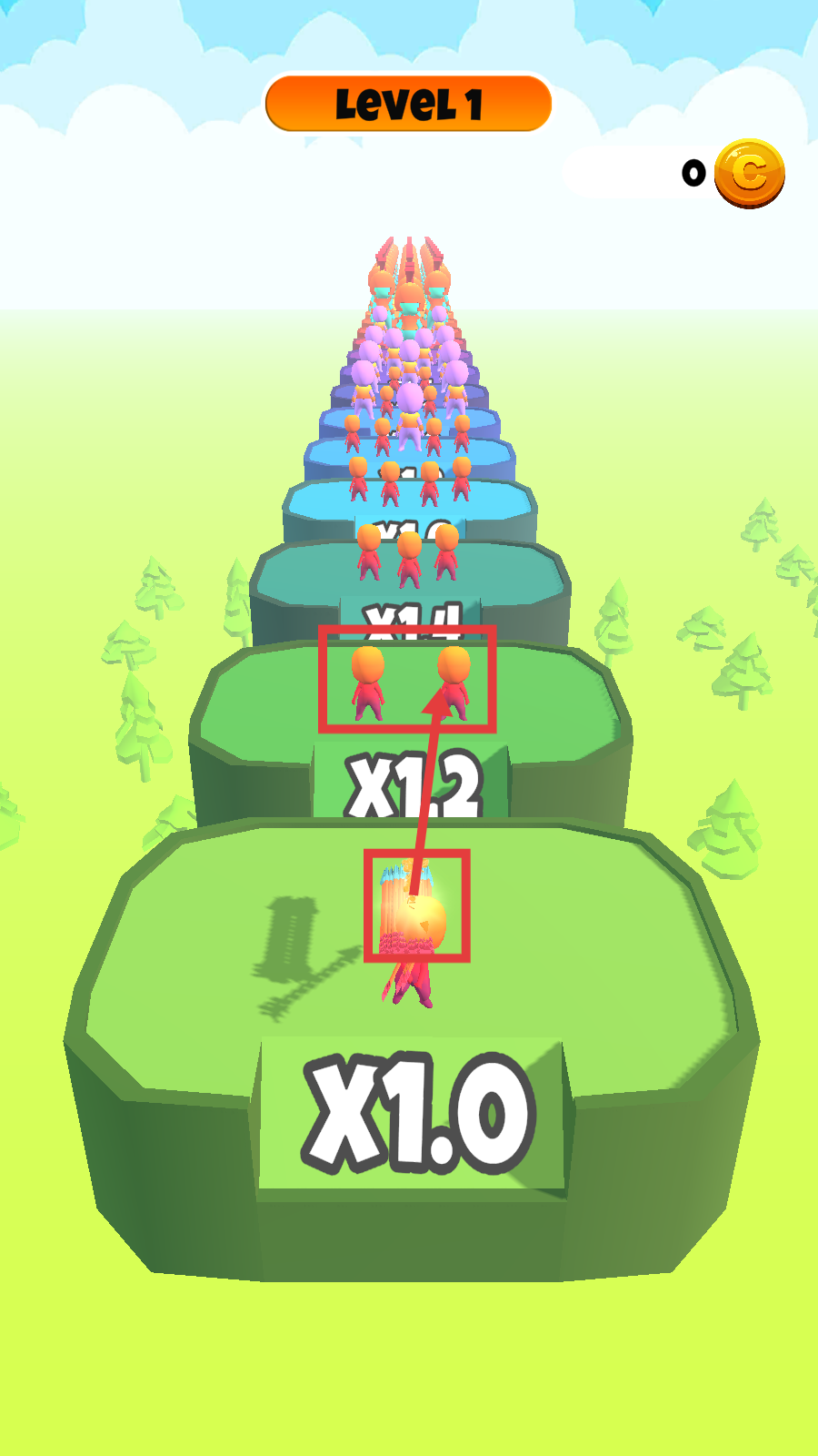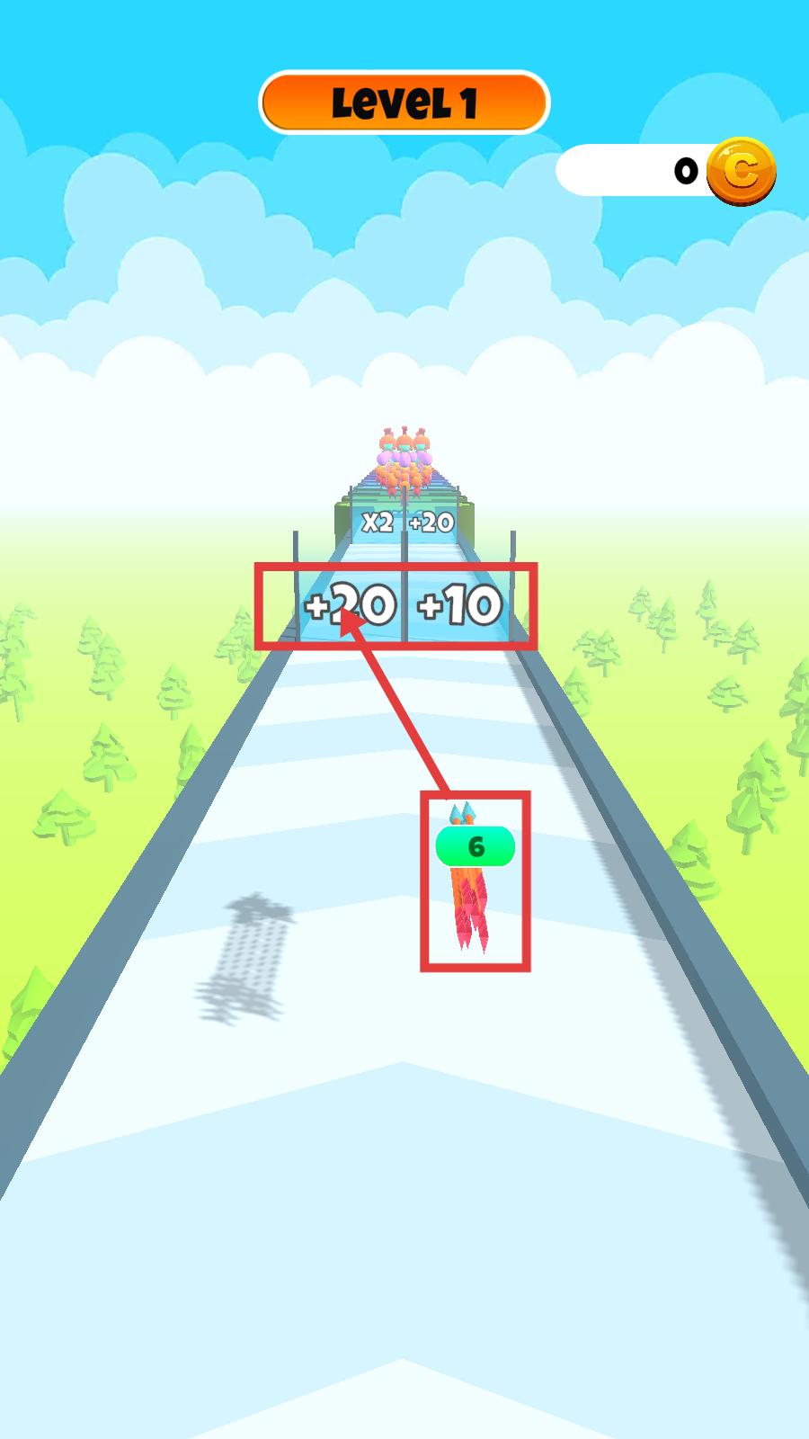 2、移動過程中優(yōu)先收集【+20】【+10】等增益,快速增加角色數(shù)量至【6】,提升戰(zhàn)力以便應(yīng)對敵人。
