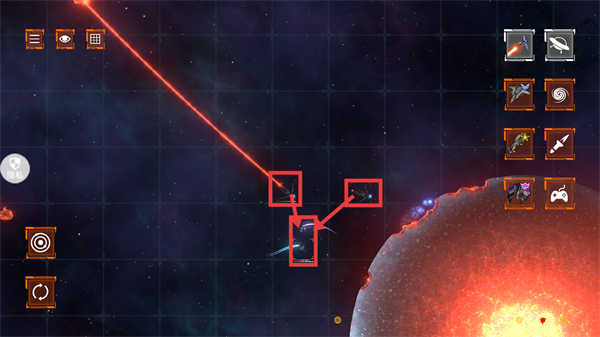 3、使用激光類攻擊,瞄準(zhǔn)多個敵方飛船,協(xié)同作戰(zhàn)提升清敵效率,推進(jìn)太空戰(zhàn)局。