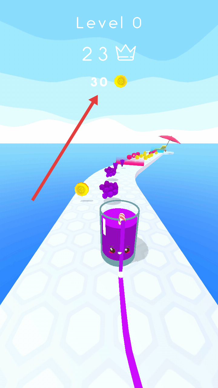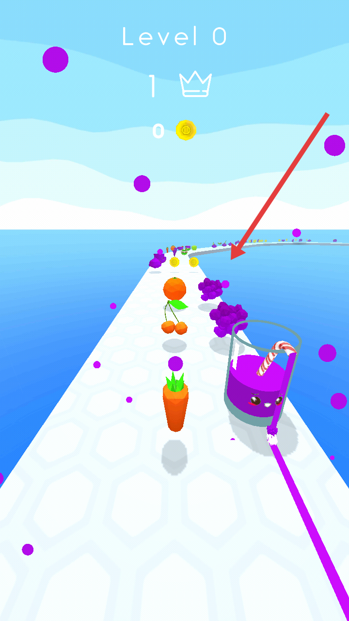 2、操控紫色果汁杯在賽道上移動,收集紫色葡萄等水果,避免接觸胡蘿卜等非目標(biāo)物品,推進(jìn)關(guān)卡進(jìn)度。