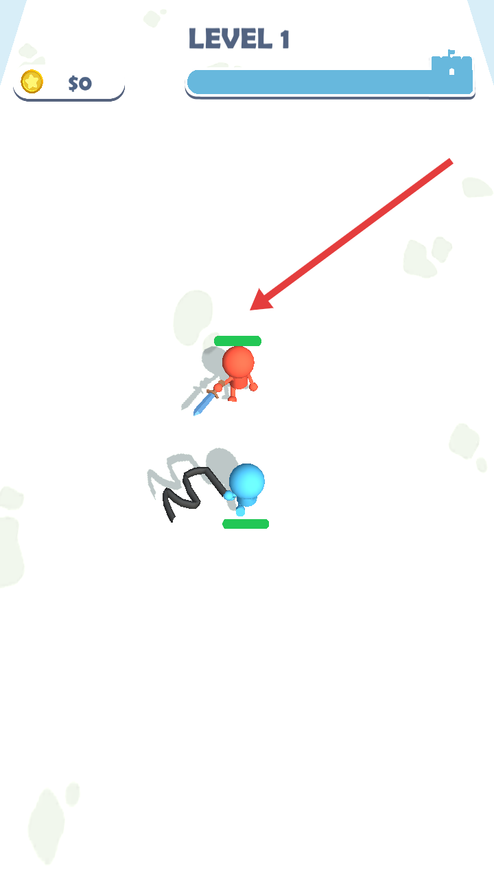 2、操控藍色角色用繪制的武器攻擊紅色敵人,把握攻擊時機,快速擊敗敵人推進戰(zhàn)斗。