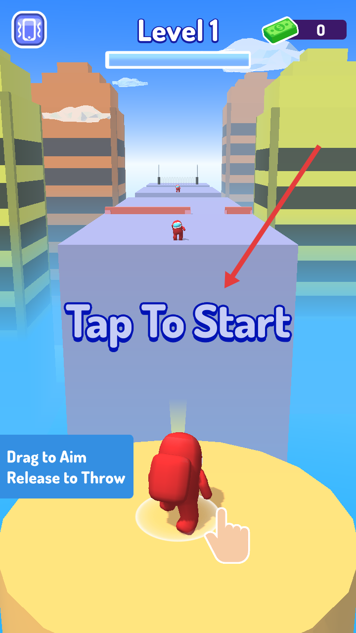 1、點擊TapToStart按鈕,開啟Level1挑戰(zhàn),熟悉DragtoAimReleasetoThrow的操作方式。