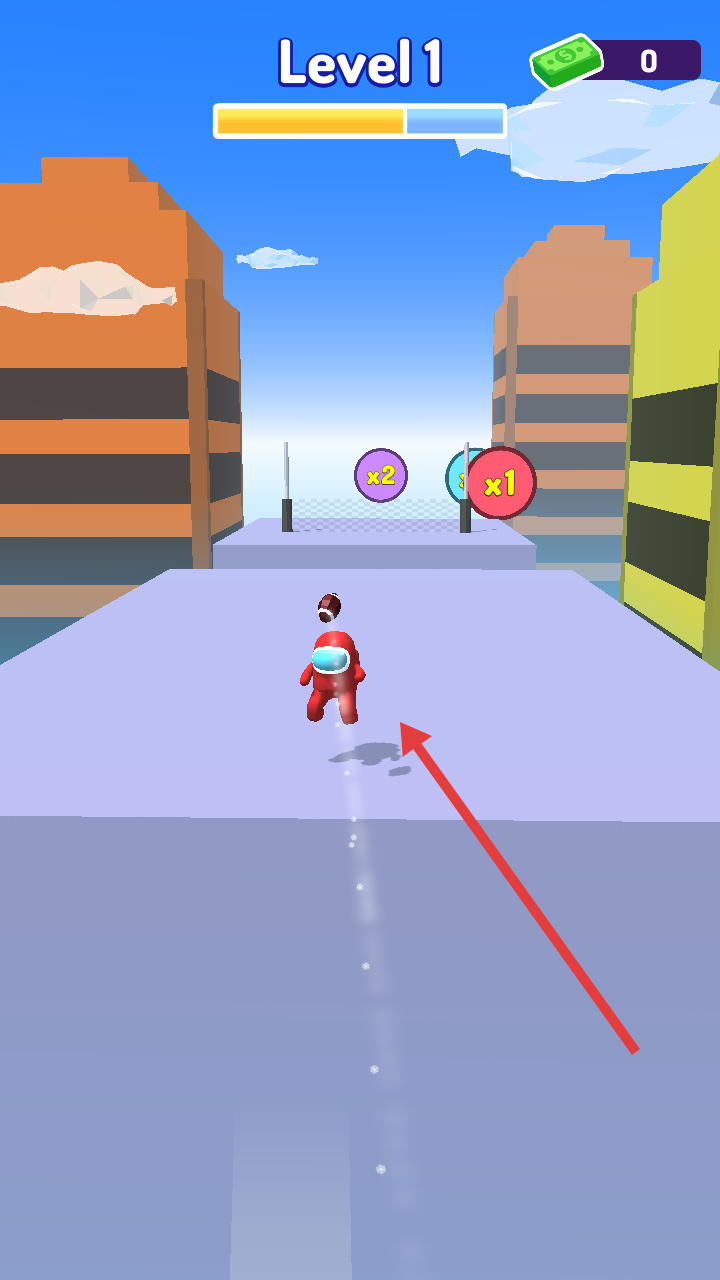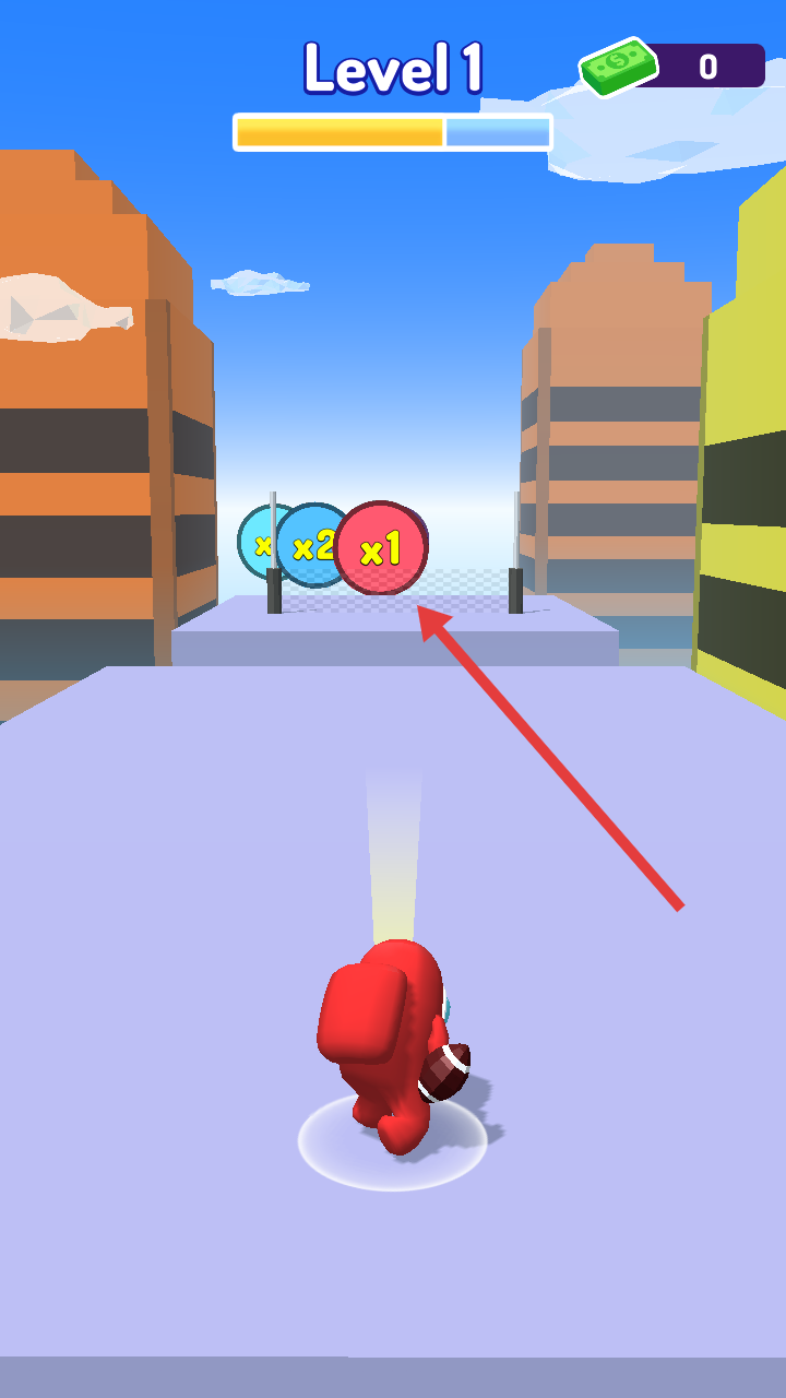 2、拖拽瞄準后釋放,操控紅色角色投擲物品,擊中前方目標,推進關(guān)卡進度,注意瞄準的精度。
