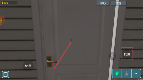 2、點(diǎn)擊右側(cè)“使用”按鈕,可打開(kāi)門或窗戶,進(jìn)入房屋內(nèi)。
