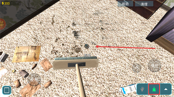3、按住“使用”按鈕,能清理垃圾或移動(dòng)家具,比如帶走室內(nèi)的垃圾。