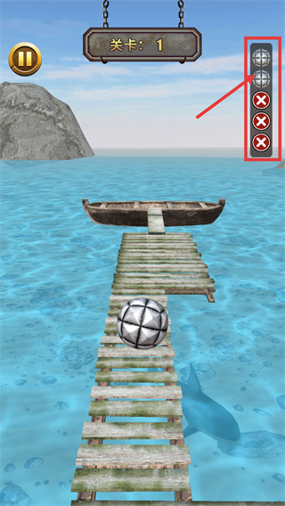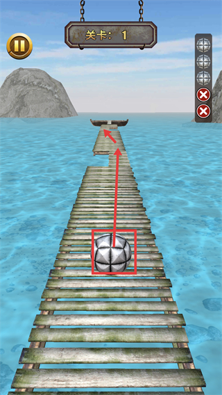2、控制金屬球沿木橋路徑前進(jìn),留意橋體缺口,平穩(wěn)操控球體避免掉落,向目標(biāo)船只推進(jìn)。