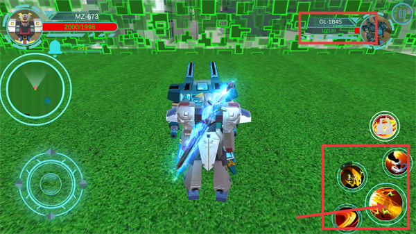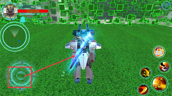 2、通過左側(cè)虛擬搖桿控制機(jī)甲移動,操控機(jī)甲在場景中戰(zhàn)斗,熟悉操作提升戰(zhàn)斗效率。