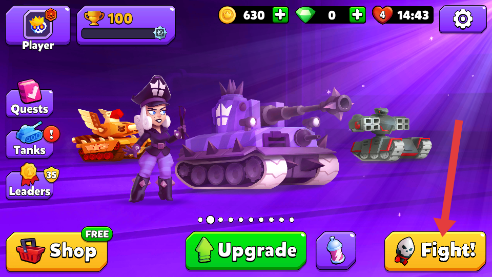 1、點擊【Fight!】進入戰(zhàn)斗,選擇坦克參與對戰(zhàn),利用不同坦克的特性展開攻擊。