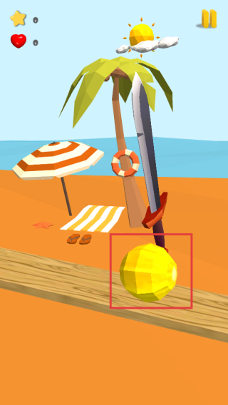 2、游戲中操控刀具切割黃色球體,積累分?jǐn)?shù),注意把握切割時(shí)機(jī)。