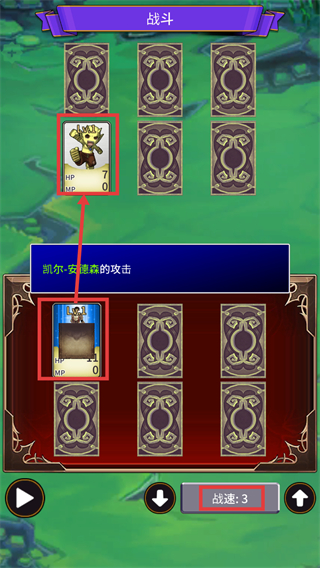 3、戰(zhàn)斗中關(guān)注【凱爾-安德森的攻擊】,合理運用卡牌,并可通過【戰(zhàn)速:3】調(diào)整戰(zhàn)斗節(jié)奏,提升對戰(zhàn)效果。