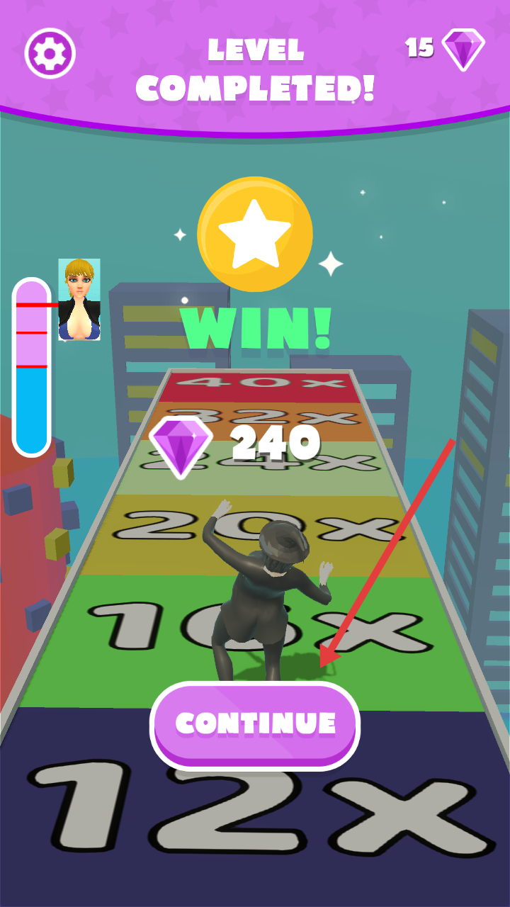 4、關卡完成后,點擊CONTINUE按鈕進入下一關,繼續(xù)挑戰(zhàn)更多城市賽道的奔跑關卡。