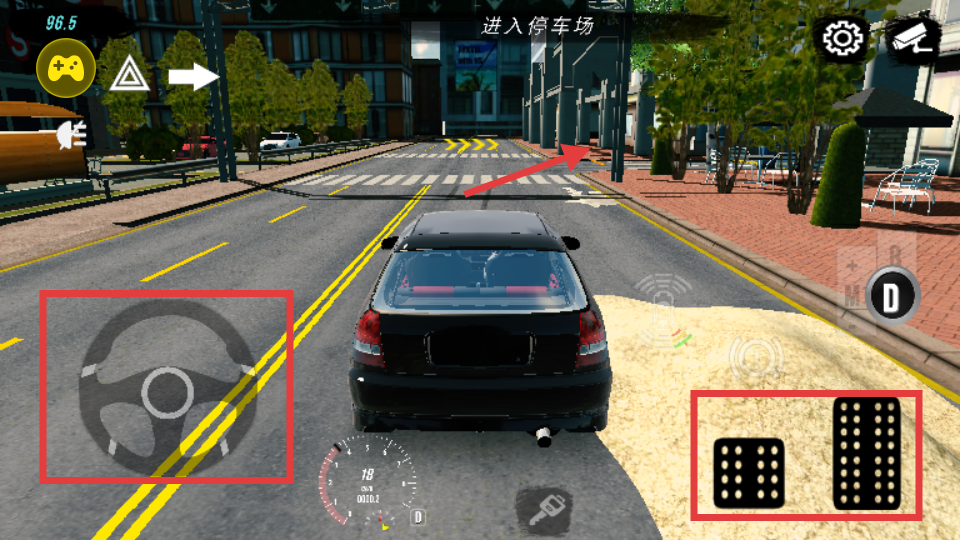 2、游戲中通過(guò)左側(cè)方向盤(pán)控制車(chē)輛方向,右側(cè)踏板控制車(chē)輛速度,精準(zhǔn)操控車(chē)輛行駛,確保順利進(jìn)入停車(chē)場(chǎng)。