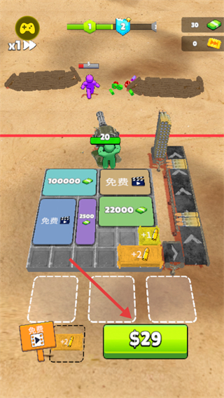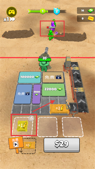 2、游戲中通過花費金幣(如$29)解鎖或升級格子,部署更多戰(zhàn)斗單位,提升戰(zhàn)場戰(zhàn)力。