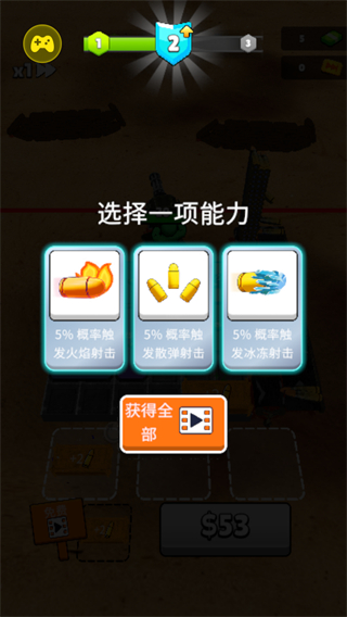 4、升級后選擇能力,增強戰(zhàn)斗單位的攻擊效果,提升戰(zhàn)斗勝率。
