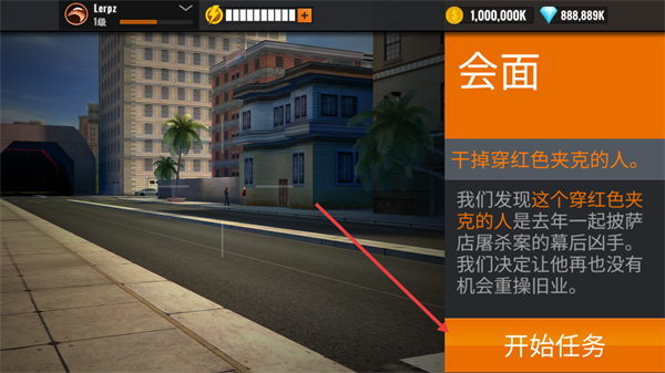 1、點擊“開始任務(wù)”按鈕,進入狙擊場景,開啟“干掉穿紅色夾克的人”任務(wù)。