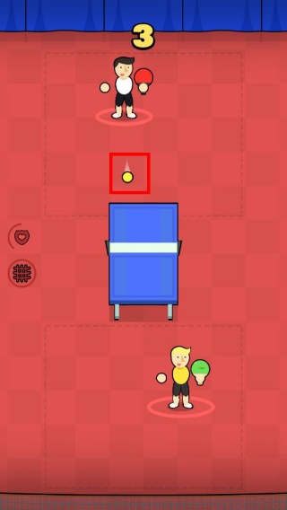 2、關(guān)注紅色方框內(nèi)的乒乓球,預(yù)判其軌跡,及時(shí)移動(dòng)角色準(zhǔn)備接球,避免丟球。
