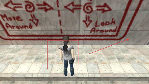 1、留意墻上【Move-Around】和【Look-Around】的提示,學(xué)習(xí)角色移動(dòng)與視角操作,為后續(xù)探索打好基礎(chǔ)。