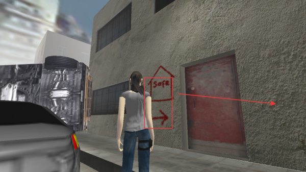 4、發(fā)現(xiàn)墻上【Safe】標(biāo)識(shí)及箭頭時(shí),操控角色朝箭頭指向的門移動(dòng),進(jìn)入安全區(qū)域完成該階段任務(wù)。