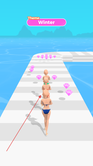2、在跑道上操控角色奔跑,收集粉色鉆石,同時注意避開障礙,提升角色造型。
