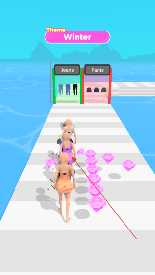 3、遇到【Jeans】和【Pants】選擇門時,根據(jù)主題需求選擇進入,獲取對應(yīng)服飾裝扮角色。